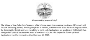 Clerk-Treasurer Seasonal Help Ad 2018